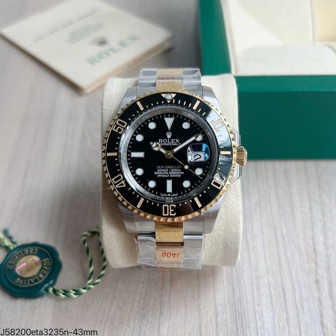 SUPER CLONE ETA MACHINE – ROLEX SEA-DWELLER BLACK SILVER GOLD 43MM