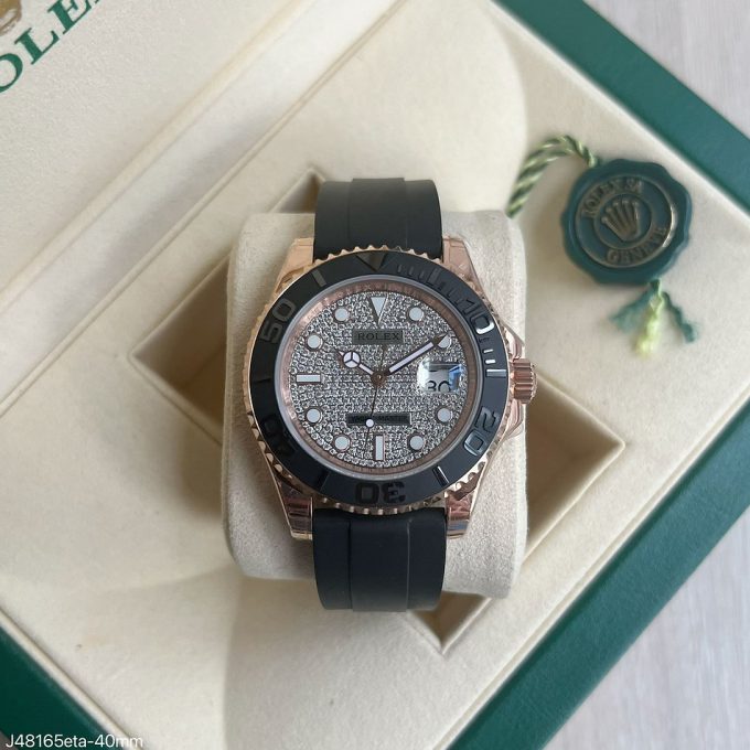 SUPER CLONE ETA MACHINE – ROLEX YACHT MASTER ROSE WITH BRILLIANT OYSTERFLEX 40MM